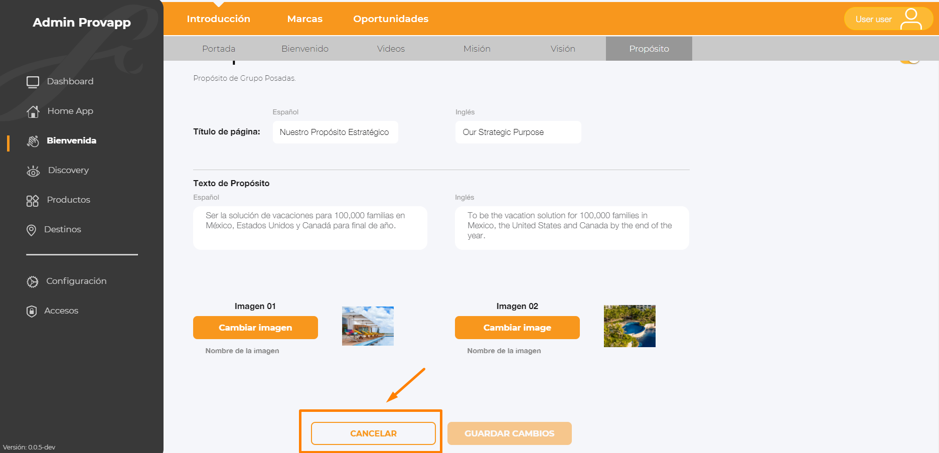 ¿Cómo modificar la portada de Propósito?