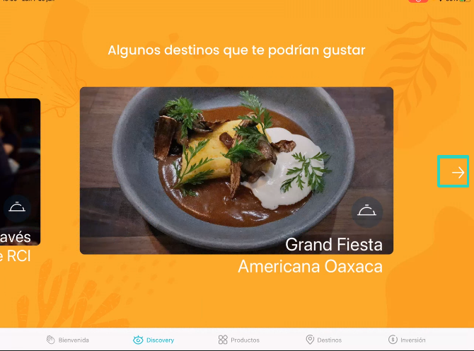 Al finalizar la galería, visualizar el icono de la flecha siguiente para pasar a la siguiente pantalla.