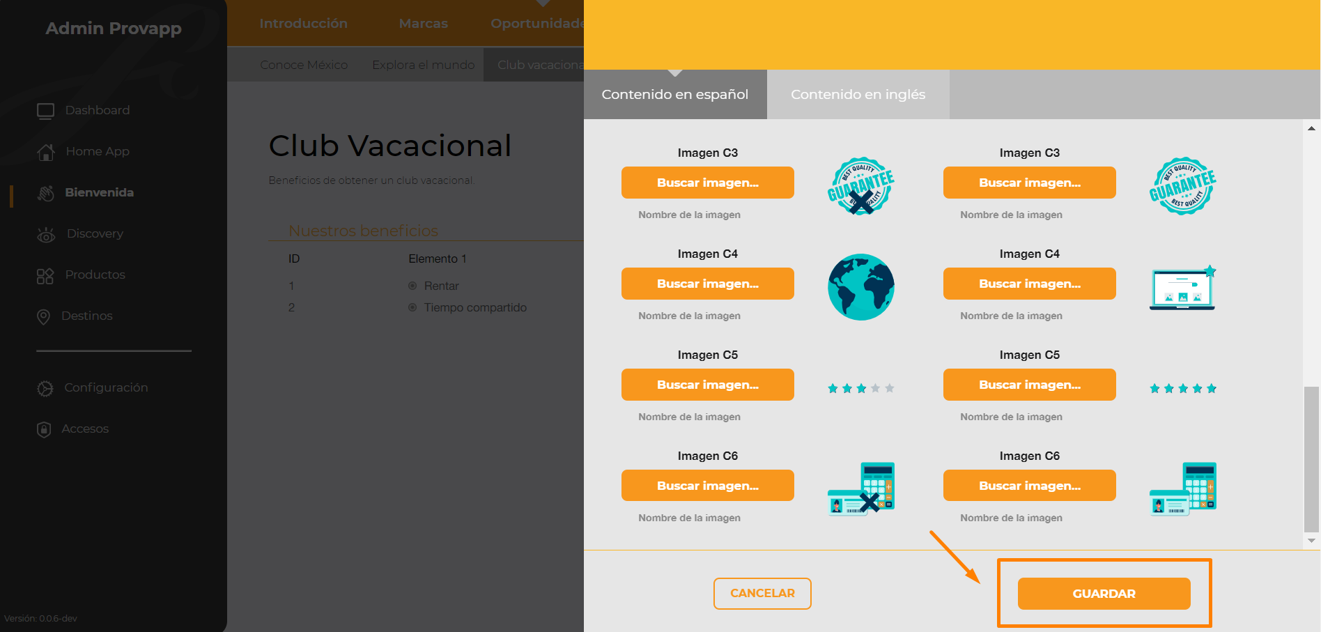 1.- Seleccionar la opción de Bienvenida, y posteriormente dar clic en la sección Club Vacacional.
