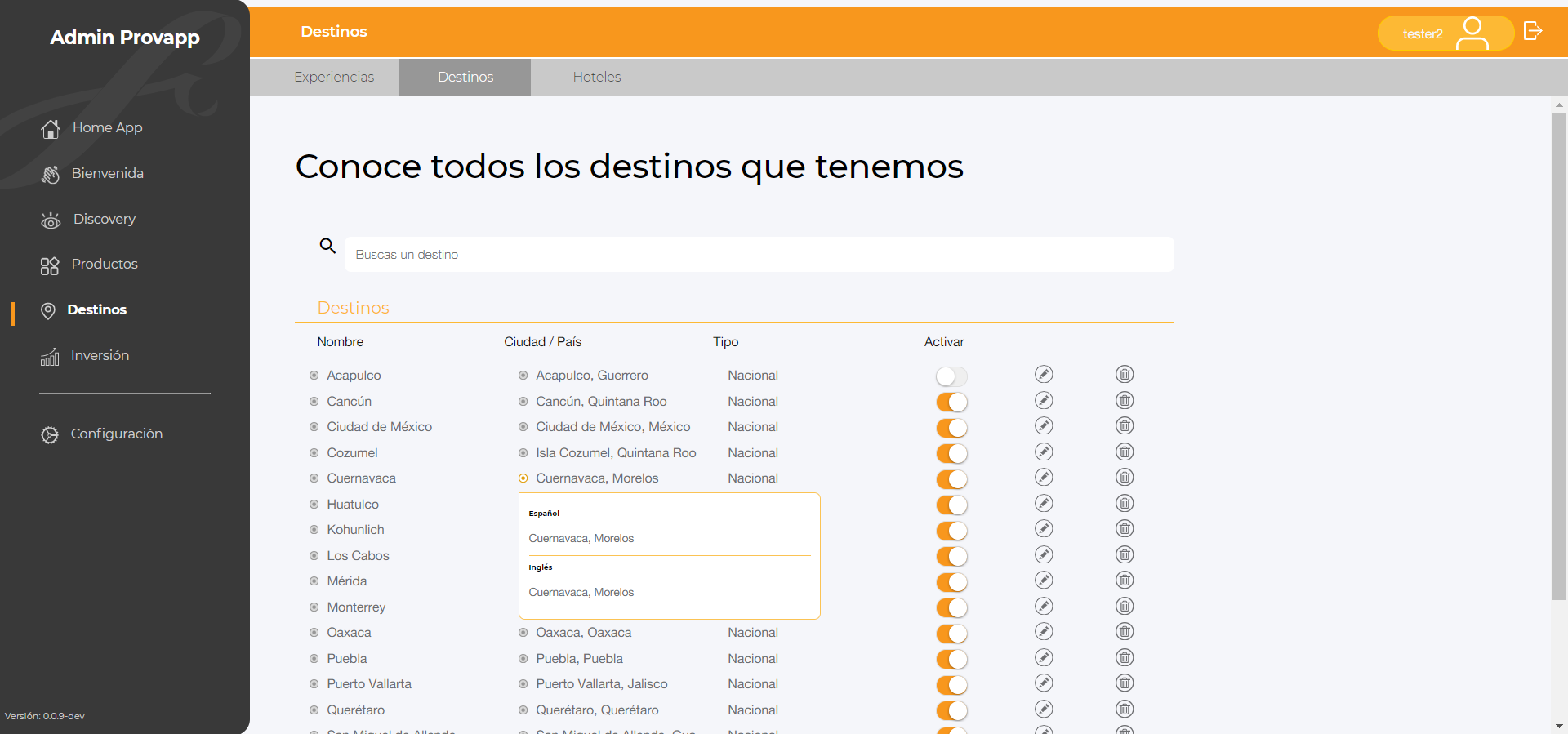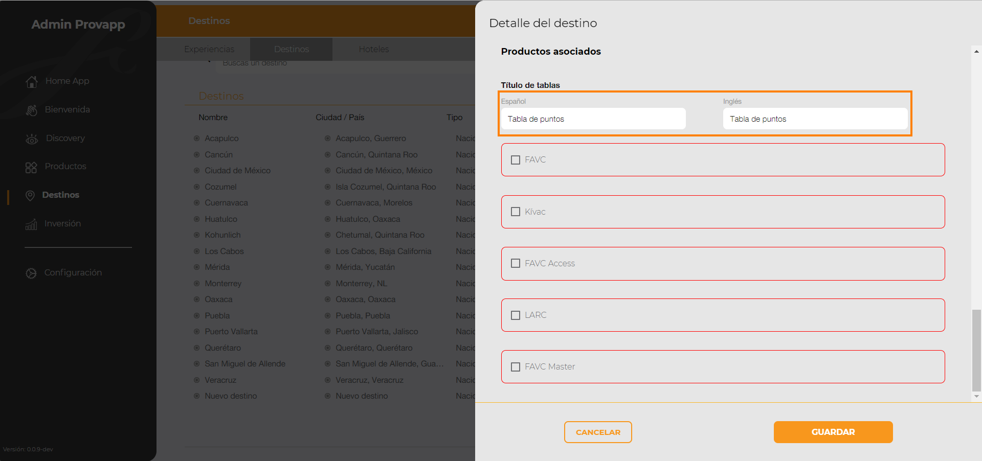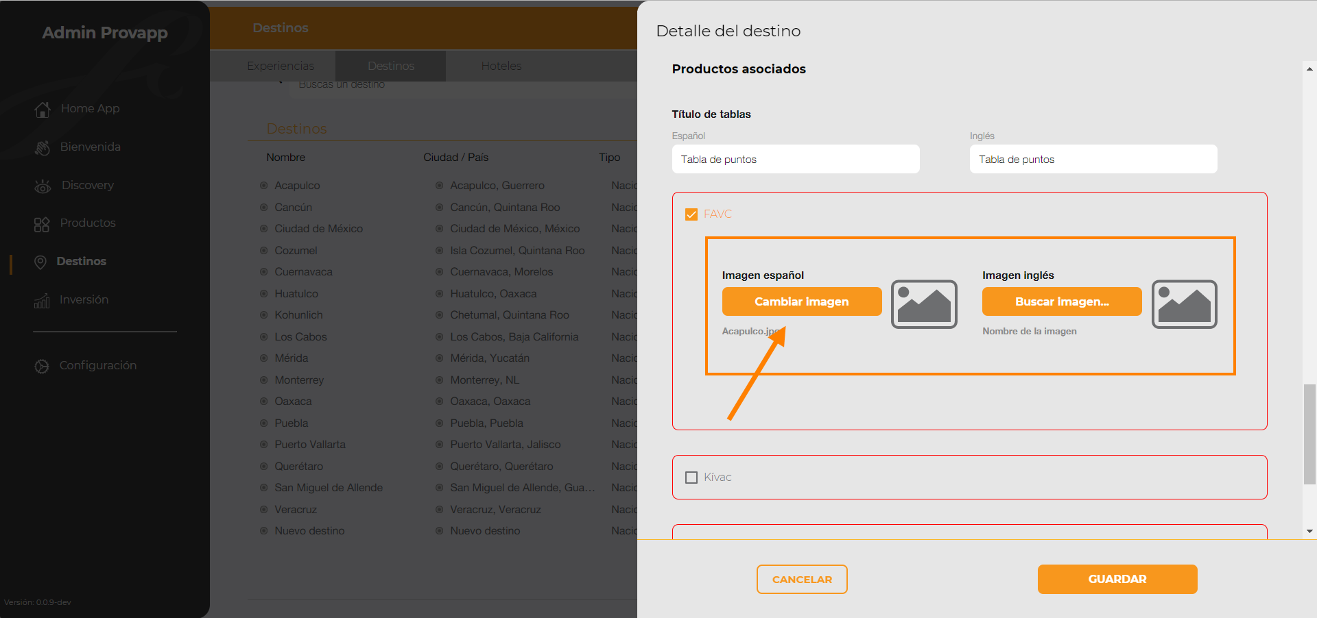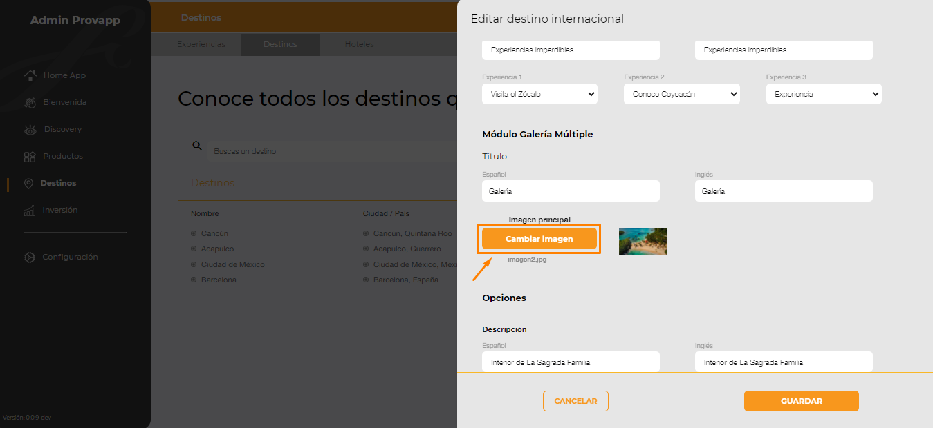 Nota: Deberá estar activo, y de esta forma al crear un hotel se pueda asociar al destino, de lo contrario no se visualizará en la sección Hoteles.