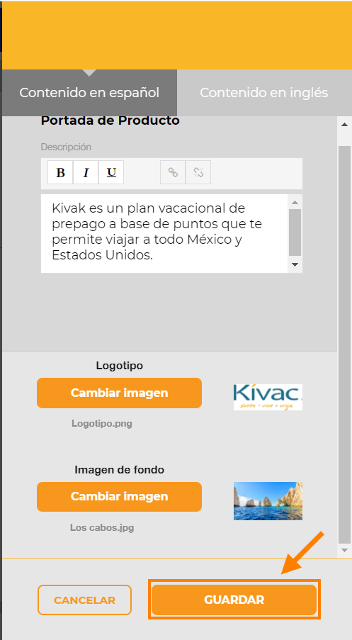 Nota: Todos los campos son obligatorios, se deberán llenar en ambos lenguajes (Español e Inglés)