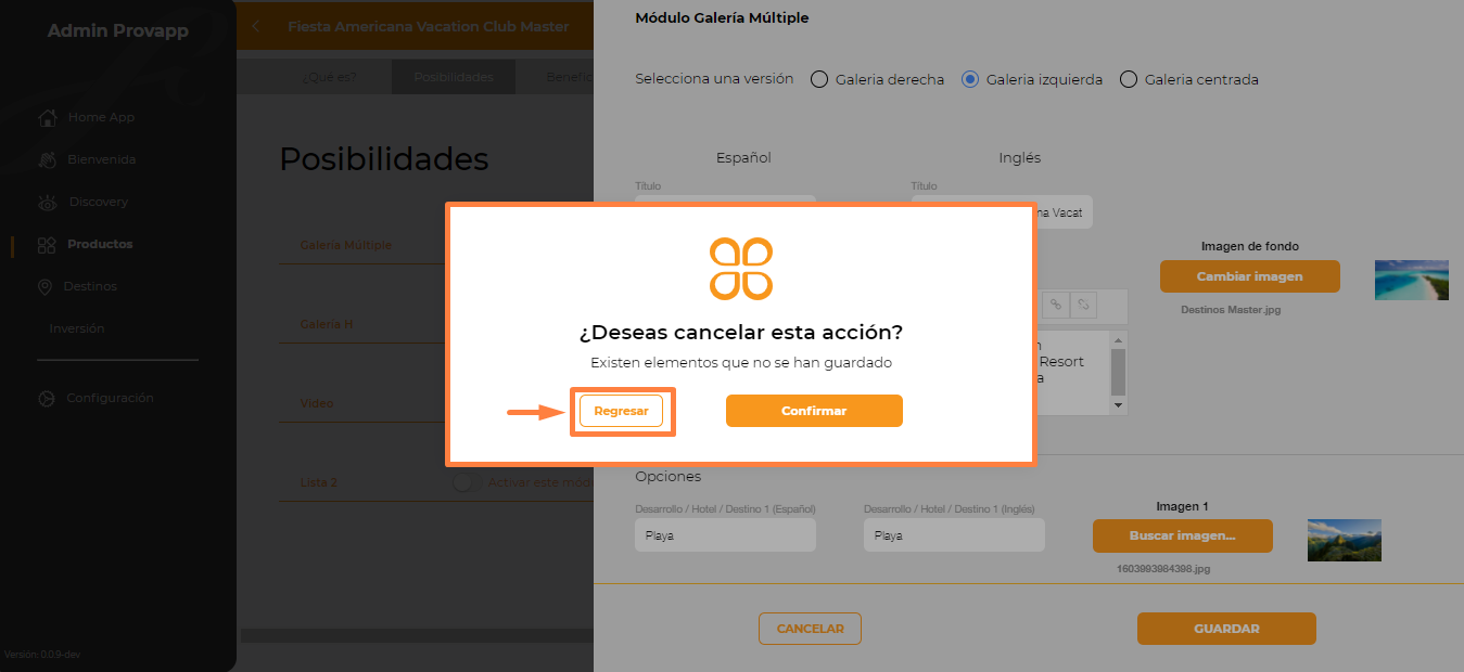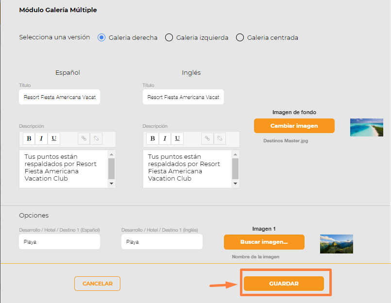 Posteriormente selecciona una versión en la que se mostrará la galería.