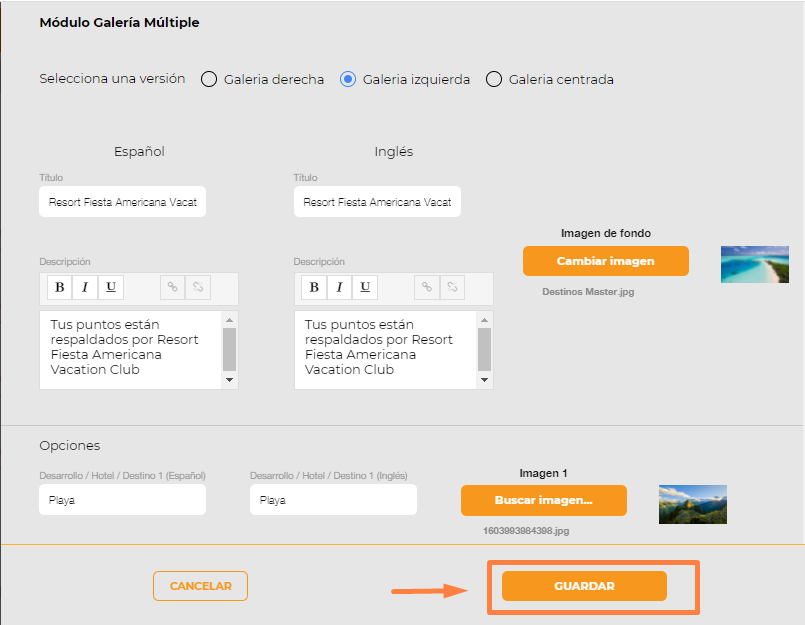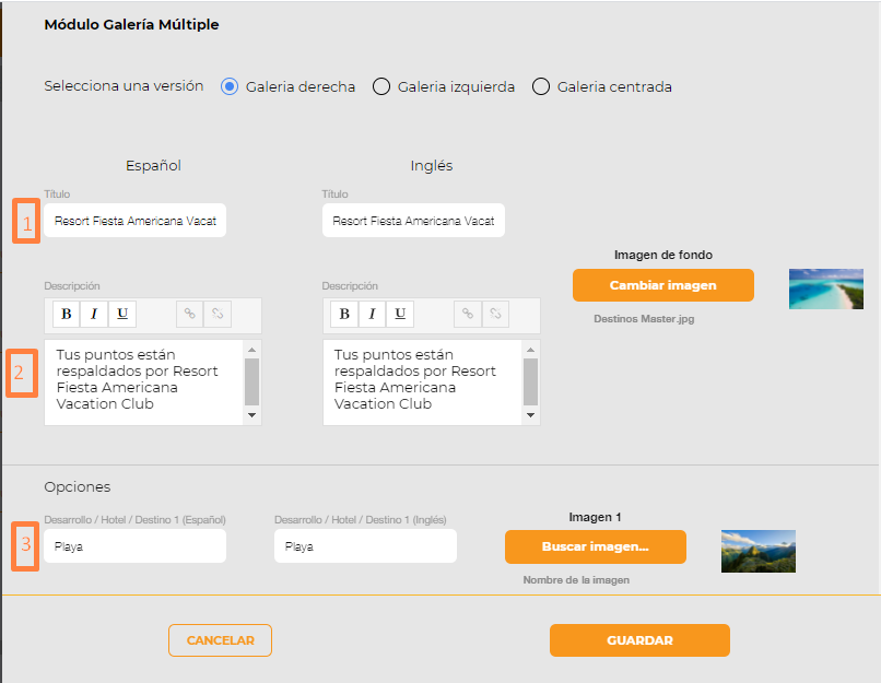 Nota: Todos los campos son obligatorios, se deberán llenar en ambos lenguajes (Español e Inglés)
