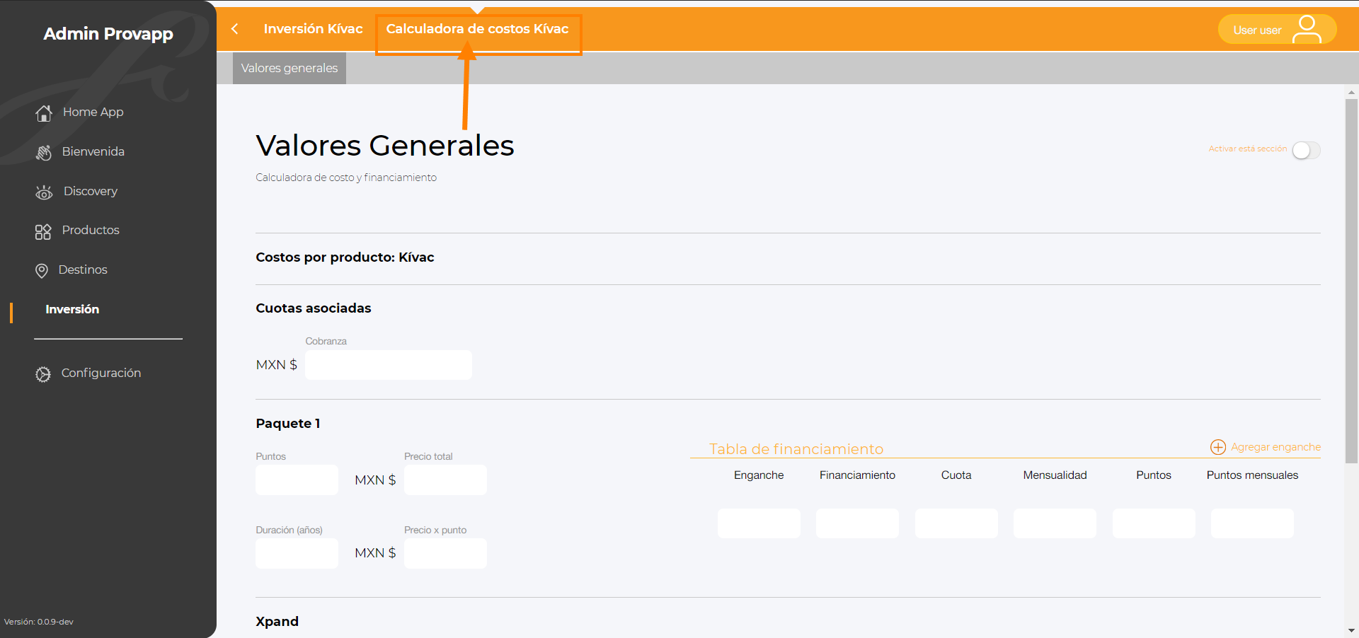 15.- Para visualizar la sección en la App, se tendrá que dar clic en el switch Activar esta sección.